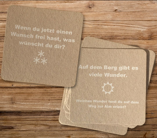 1. UMSETZUNG: Bierdeckel, Bilder, Design- und Dekorationselemente, Speisekarten, Untersetzer, Servietten oder ganz individuell gestaltete Produkte.
